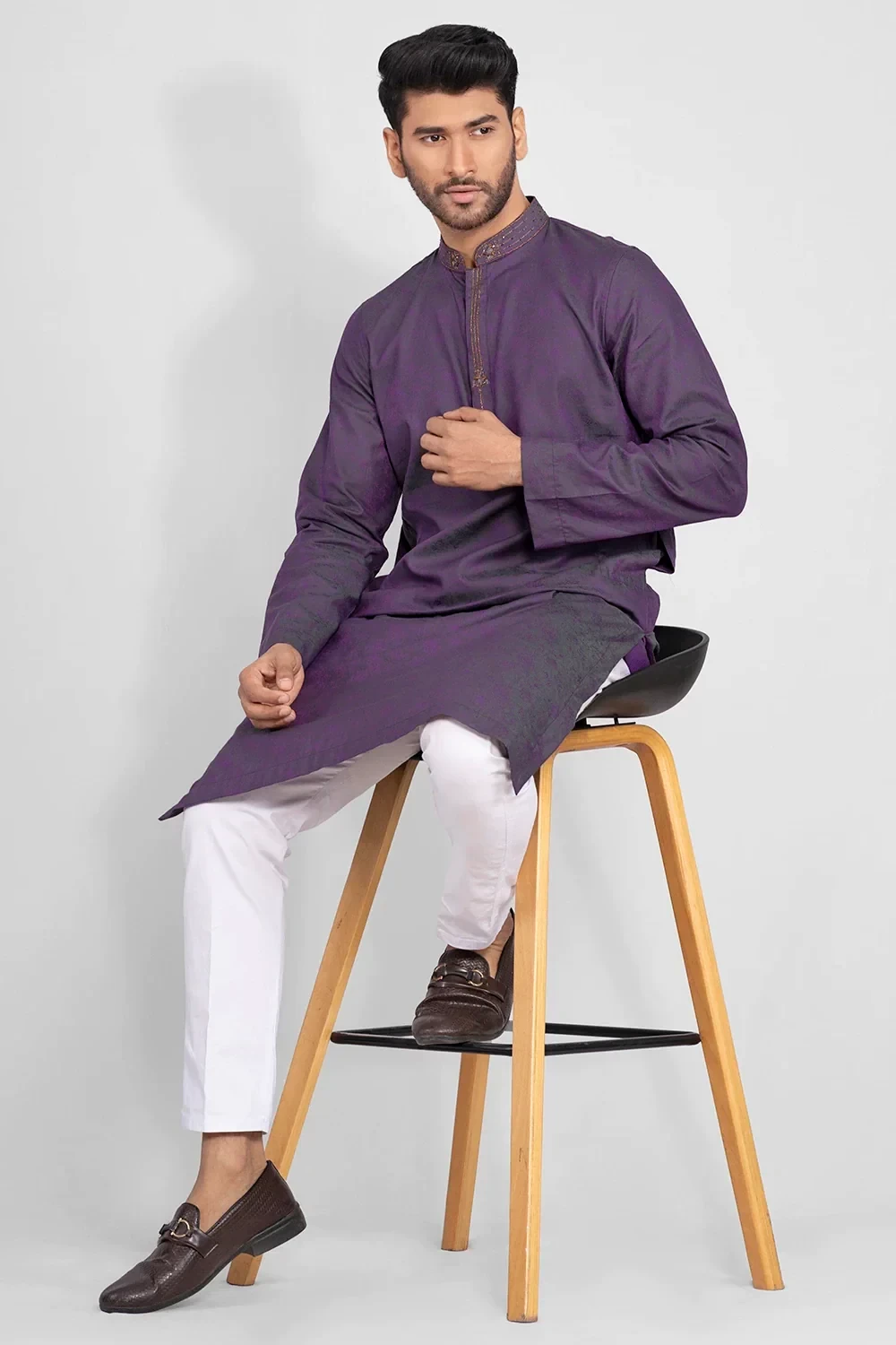 Crafted from luxurious 100% cotton for a comfortable regular fit, this Zardozi worked panjabi elevates your style.