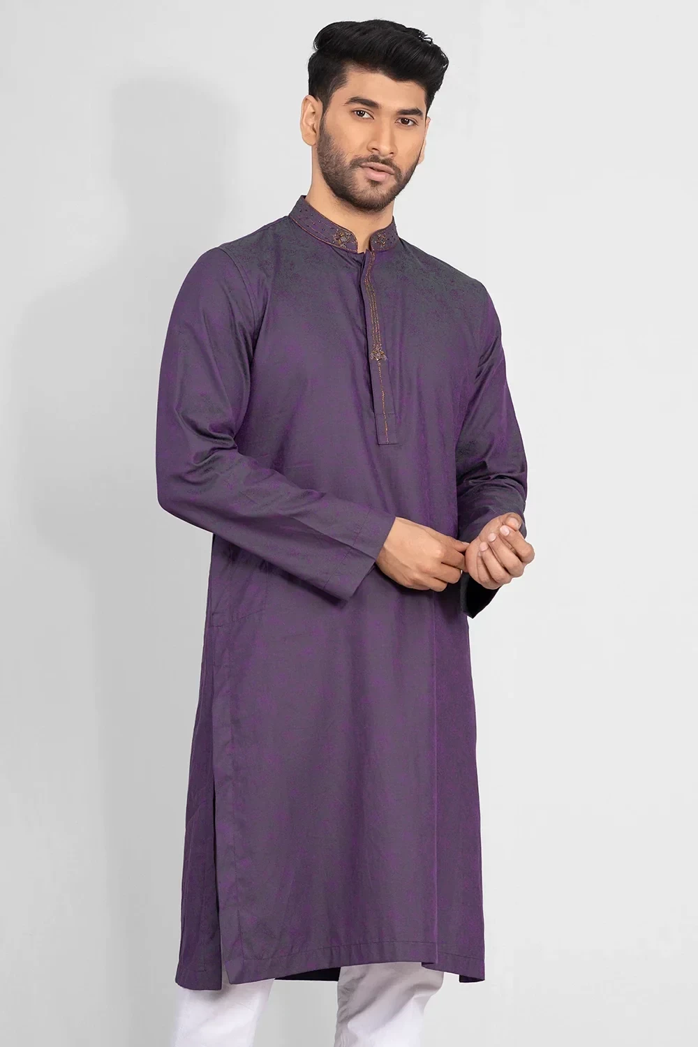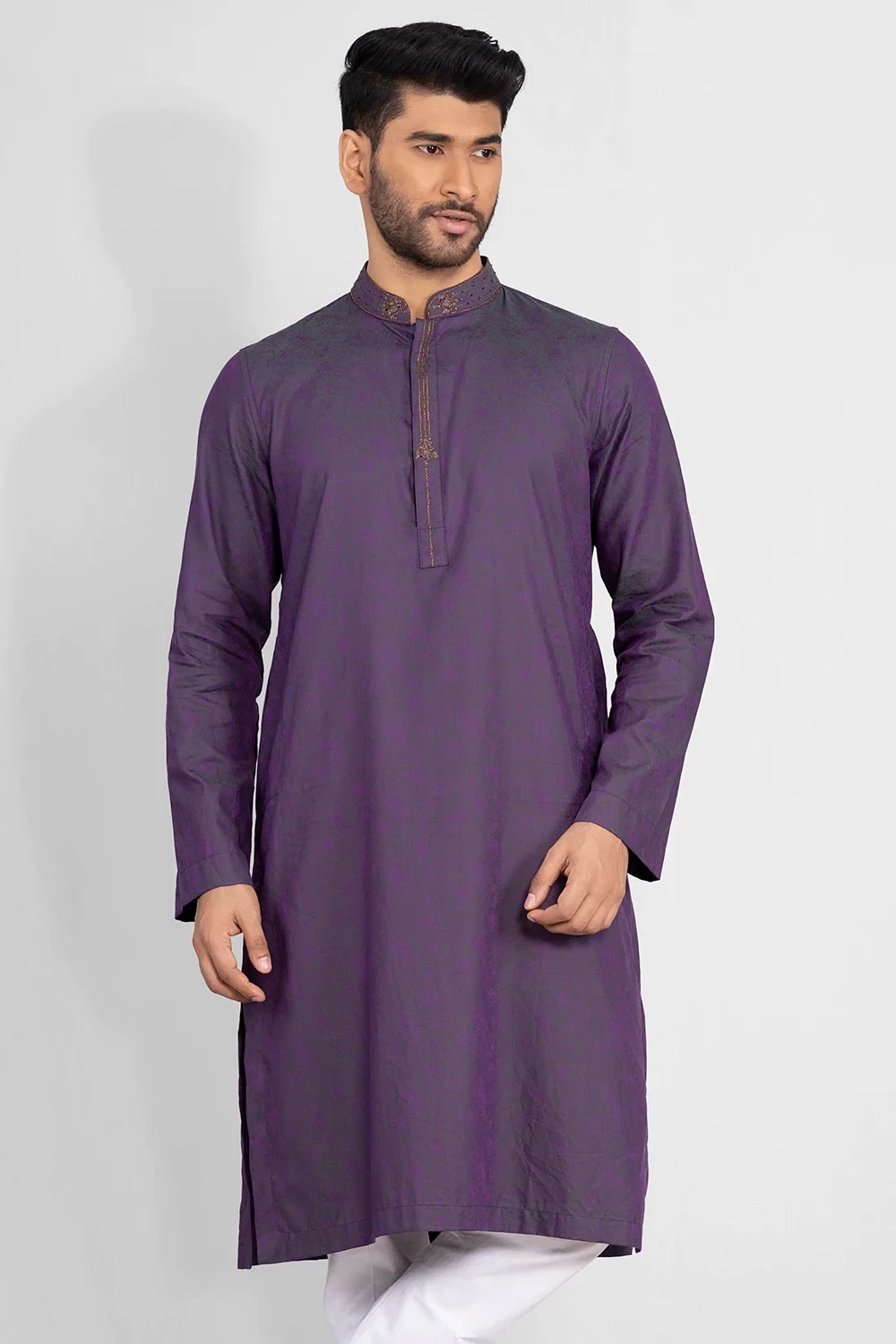 Crafted from luxurious 100% cotton for a comfortable regular fit, this Zardozi worked panjabi elevates your style.